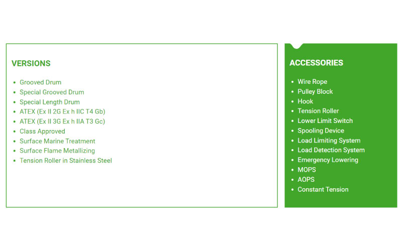 Vores udvalg af tilbehør og funktioner giver vores kunder mulighed for at tilpasse deres spil til at opfylde deres specifikke behov og krav. Uanset om du har brug for yderligere sikkerhedsfunktioner, forbedret funktionalitet eller præcis spændingskontrol, har TMA ekspertisen og erfaringen til at give dig det tilbehør, du har brug for for at optimere dine løft. se på billedet hvilke fordelagtige muligheder, funktioner og tilbehør der er muligt med TMA wirespil. Bemærk det er ikke alle spil der har alle tilbehørsmuligheder / funktioner beskrevet her.